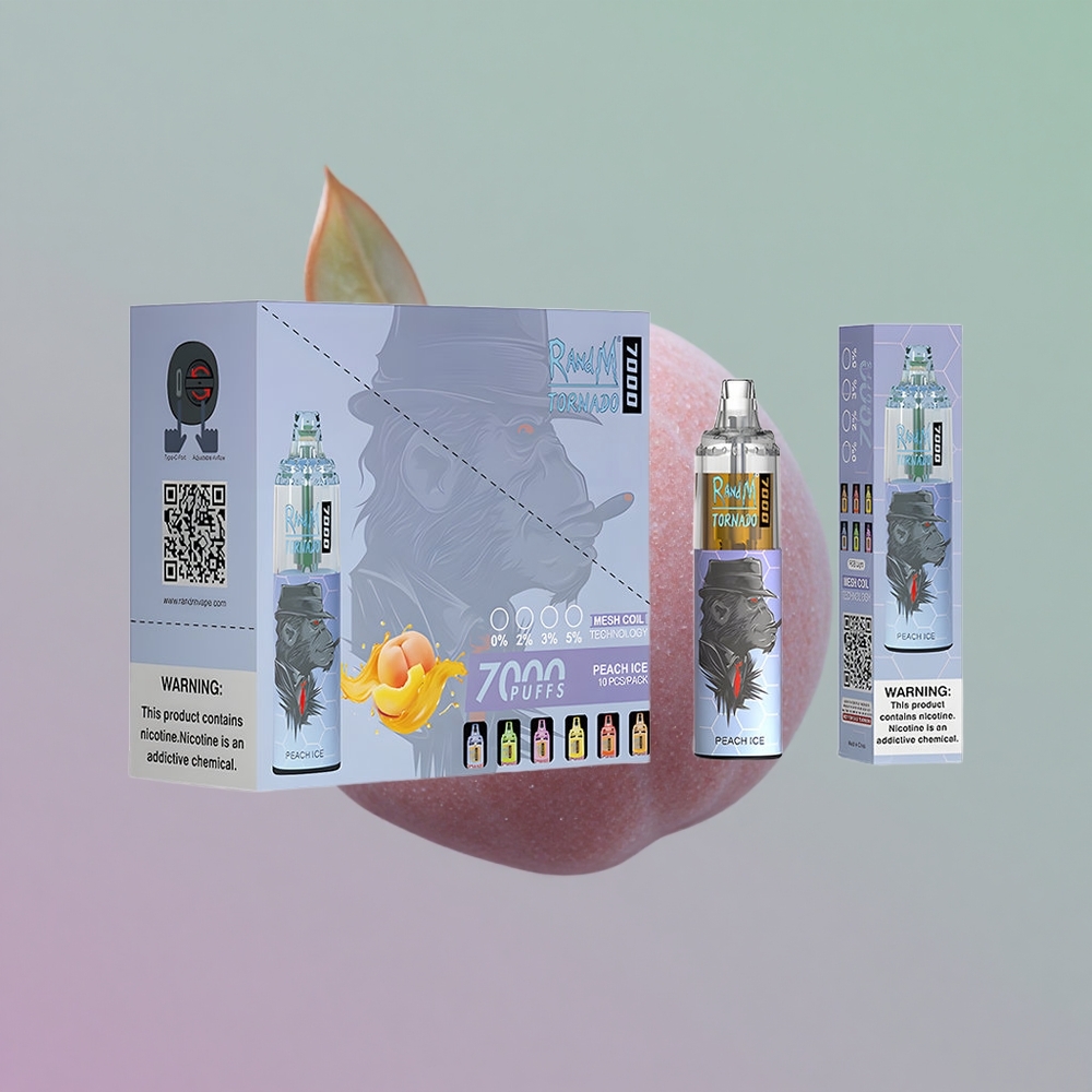 RandM Fumot Tornado 7000 אפרסק קרח עם סוללת 850 ו-14 מ"ל