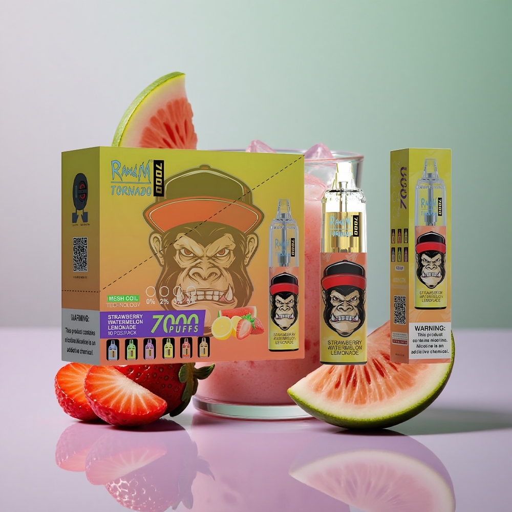 RandM Fumot Tornado 7000 תות אבטיח לימונדה עם סוללה 850 MAH וסליל מש