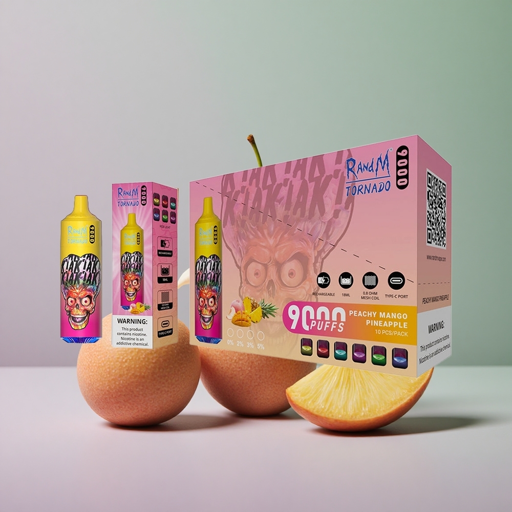 RandM Fumot Tornado 9000 אננס מנגו אפרסקי עם סוללה נטענת וסליל רשת
