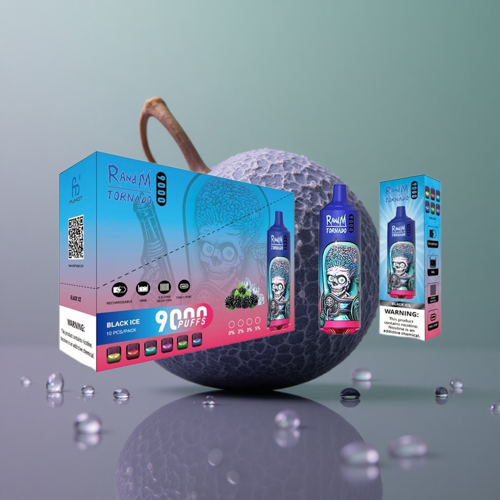 RandM Fumot Tornado 9000 קרח שחור עם סוללה נטענת וסליל מש