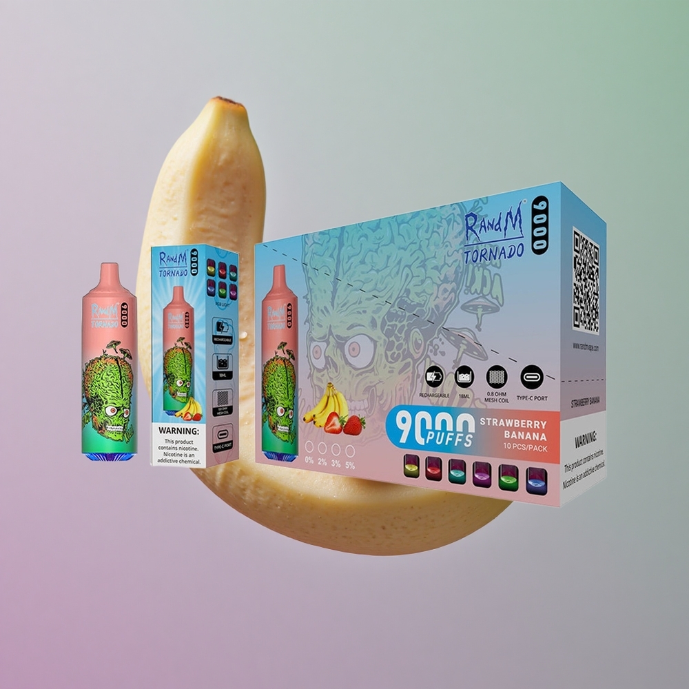ראשי| קנייה חמה| RandM Fumot Tornado 9000 תות בננה עם סוללה נטענת וסליל רשת